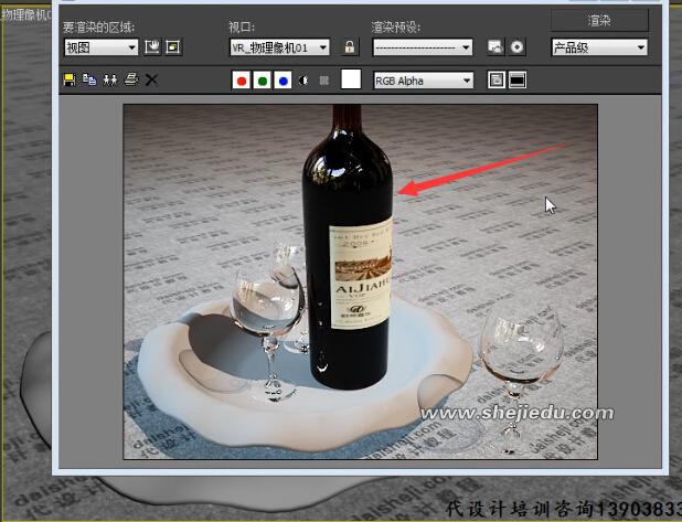 08、我们渲染出来看一下酒瓶的材质,感觉不错吧!