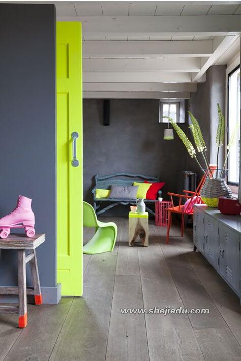 对于艳丽的颜色我们一般不主张大面积使用,这样会让空间看起来压抑沉闷,所以千万不要过量使用;但是局部使用,就会带来点睛之笔的装饰效果;当然我们不仅可以在墙面上使用艳丽色块,还可以选择霓虹家具像椅子、书架、门甚至整面墙都可以,这样抢眼的装饰效果非常的酷、非常的时尚现代!具有品味的选用这些霓虹色彩装饰家居,让我们拥有个性时尚的空间吧!