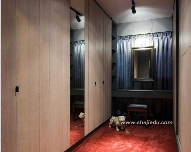 08、这个空间既可以成为客房也可以成为工作室,墙面上的收纳柜整体感很强,同时也可以收纳更多的物品。中间也有镜面元素让空间显得宽敞。