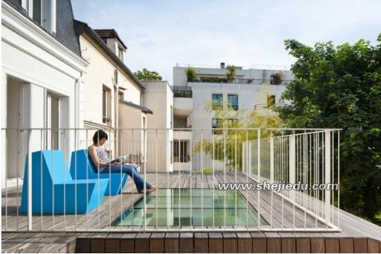 06、顶部是不是别具洞天,这里是一个开阔的露台,实木的地面上面还有玻璃材质,知道这是什么吗?对了这是下层顶部的天窗,这样与周围环境浑然天成的设计非常的赞!