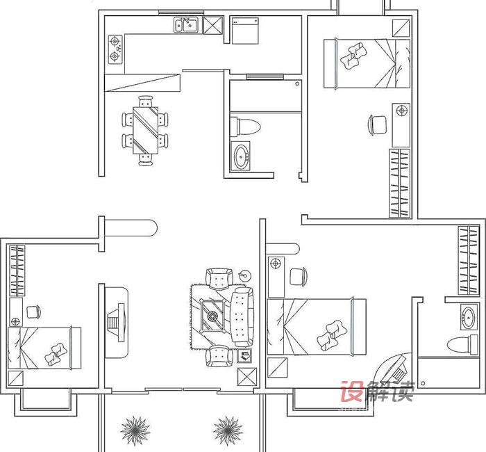 首先,是对室内空间的功能分析,功能分析顾名思义,就是对各室内空间的使用功能、交通人流与功能分区之间矛盾的解决,让每一个室内空间不仅功能划分合理,空间利用度高,而且有一个舒适便利的人流活动,通过对室内平面图的分析,我们就可以得出每一个居室功能的使用要求和相邻空间的关系。